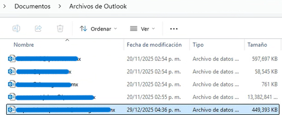 Para saber el tamaño necesario de la USB abre la carpeta «Archivos de Outlook» que se halla en la carpeta «Documentos» del equipo en el que reside la cuenta que trasladarás, ahí hallarás un archivo homónimo a tu cuenta de correo, presiona click derecho sobre él y luego selecciona «Propiedades«, busca el parámetro «Tamaño«, este indica la cantidad de MB o GB que ocupa tu archivo (el cual trasladarás), tu USB debe ser igual o mayor a este espacio.