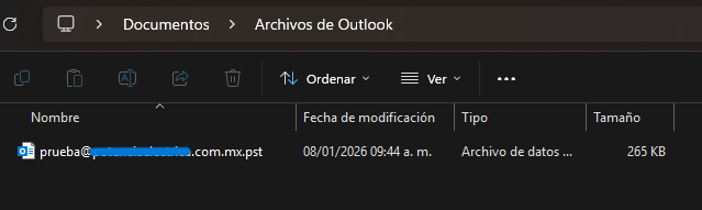- Coloca la memoria USB en el ordenador 2 (en el cual se va configurar la cuenta), abre el Explorador de Archivos y luego entra a la carpeta de la memoria, selecciona el archivo que colocaste en ella en el paso 1, da click derecho en él y presiona «Copiar«, después entra a la carpeta Documentos del equipo y en ella busca la carpeta Archivos de Outlook, si no existe, crea una llamada igual, luego de crearla o identificarla, da click derecho en ella y presiona «Pegar«, abre la carpeta, debería verse tu archivo copiado en ella: